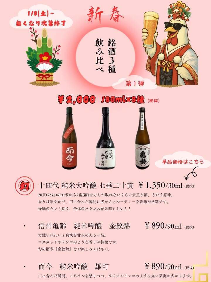 銘酒3種飲み比べ🍶も昨日から始まってますよ〜🤗